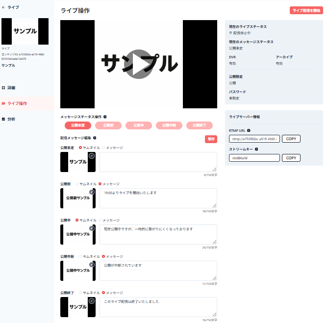 ライブ配信操作を行う
